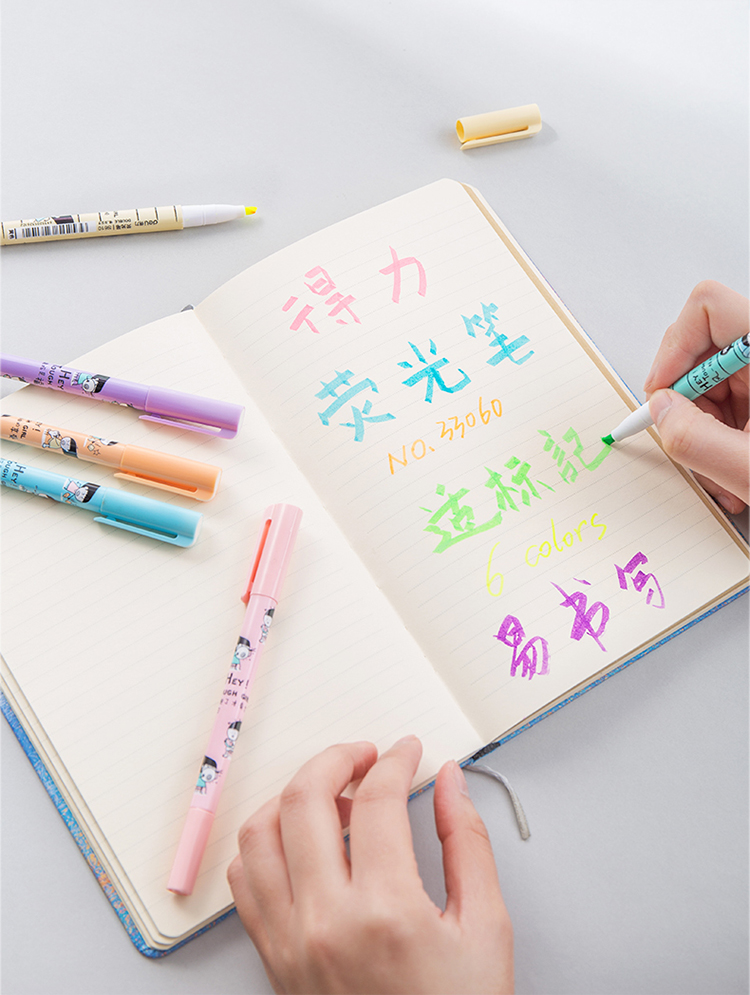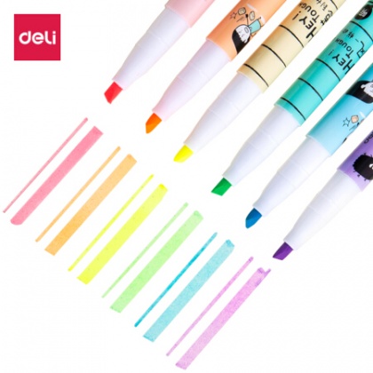 • 得力(deli)雙頭多用重點(diǎn)醒目標(biāo)記熒光筆 手帳可用水性記號(hào)筆6支/盒 33060