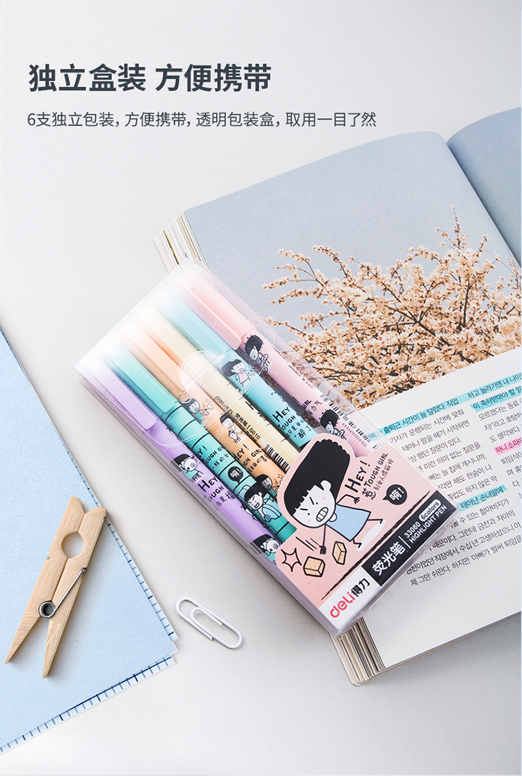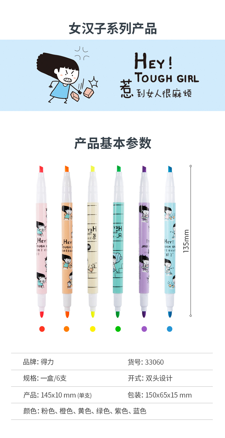 • 商品名稱:得力(deli)雙頭多用重點(diǎn)醒目標(biāo)記熒光筆 手帳可用水性記號(hào)筆6支/盒 33060