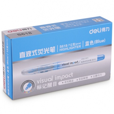 • 商品名稱:得力(deli)藍(lán)色直液式重點標(biāo)記熒光筆 手帳可用水性記號筆12支/盒 S618