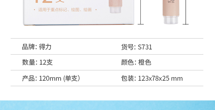 • 商品名稱:得力(deli)熒光筆醒目標記筆 水性記號筆 12支/盒DL-S731橙