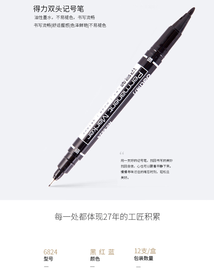 • 商品名稱:得力(deli)黑色雙頭多用油性記號筆簽字筆 勾線筆會議筆馬克筆12支/盒6824