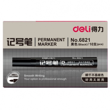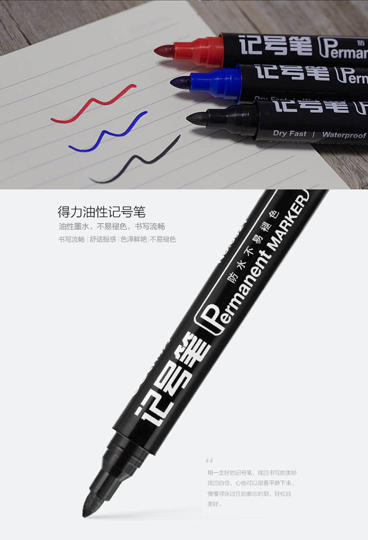• 商品名稱:得力(deli)黑色粗頭物流油性記號筆大頭筆 簽名筆馬克筆10支/盒6821
