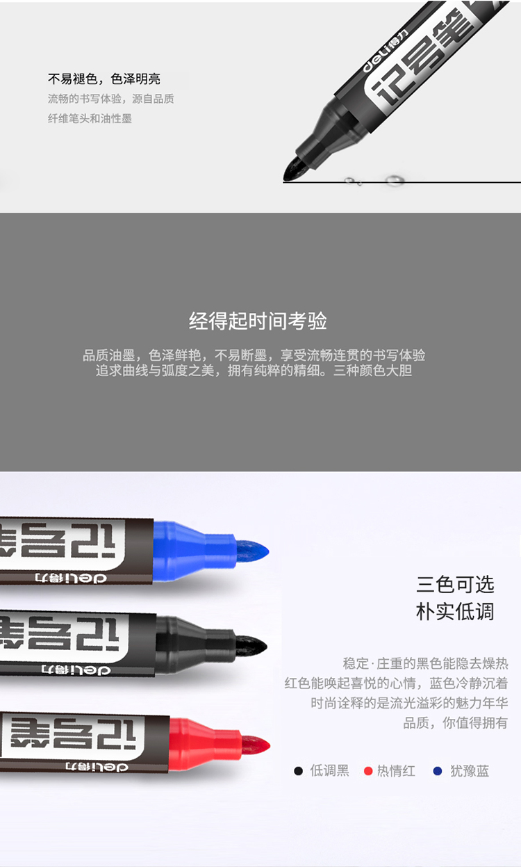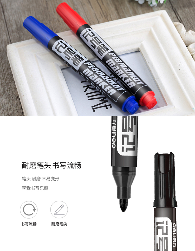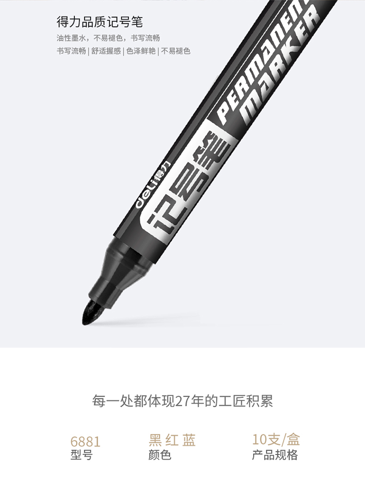 • 商品名稱(chēng):得力(deli)藍(lán)色粗頭物流油性記號(hào)筆大頭筆 10支/盒6881