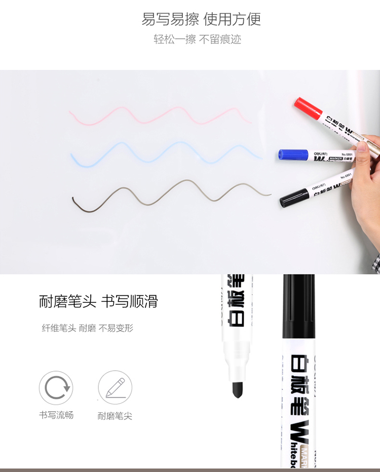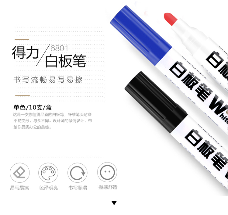 • 商品名稱:得力(deli)辦公會議教學可擦易擦白板筆 黑色 10支/盒6801