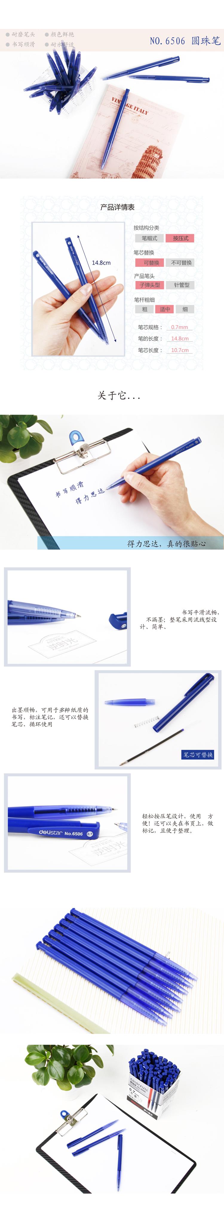 • 商品名稱:得力(deli)0.7mm按動(dòng)60支圓珠筆中油筆 藍(lán)色原子筆 6506