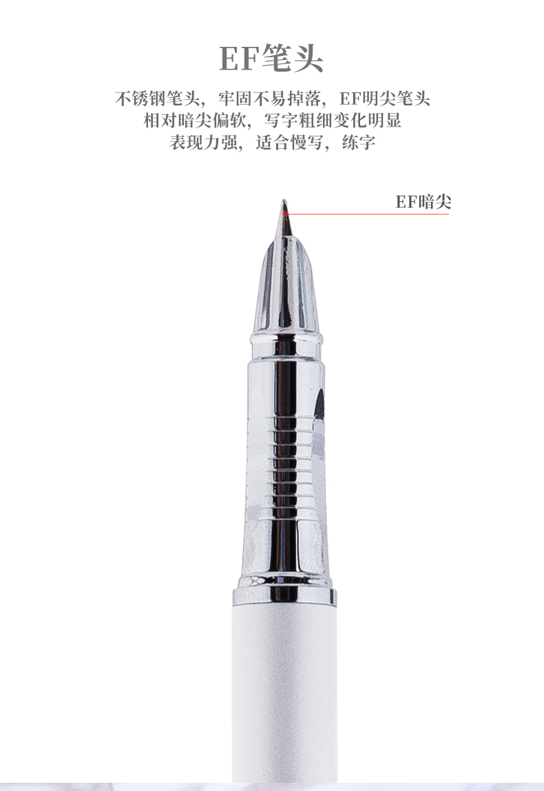• 得力(deli)EF暗尖優(yōu)調(diào)矯正姿鋼筆簽字筆 學(xué)生金屬練字墨水筆 白色 S271