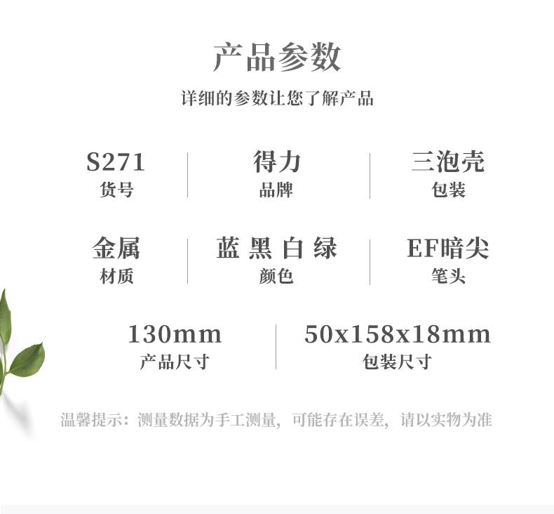 • 商品名稱:得力(deli)EF暗尖優(yōu)調(diào)矯正姿鋼筆簽字筆 學(xué)生金屬練字墨水筆 白色 S271