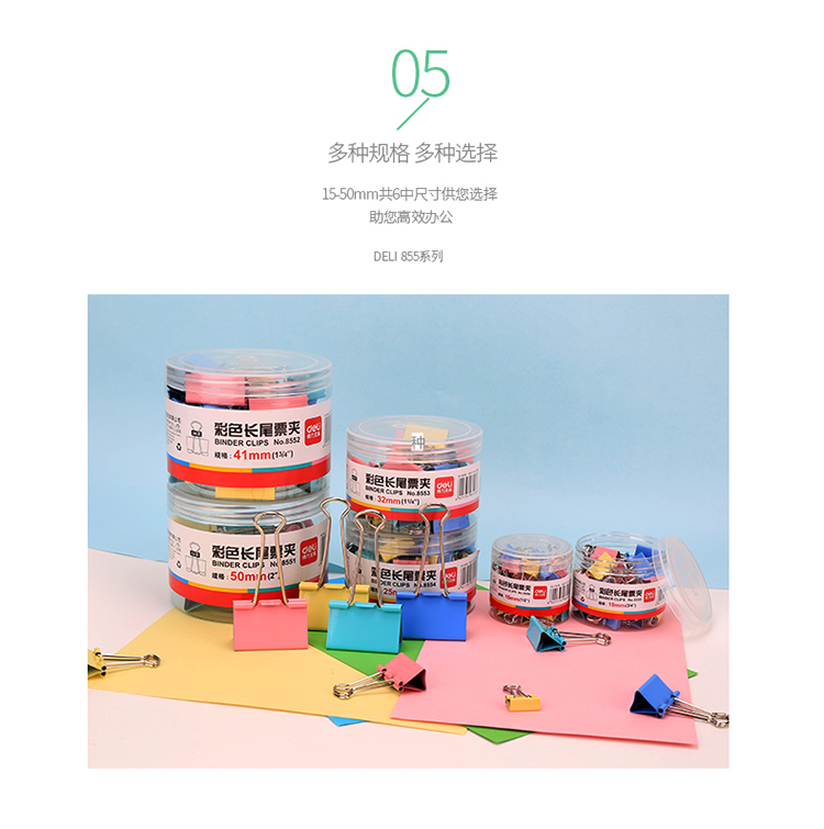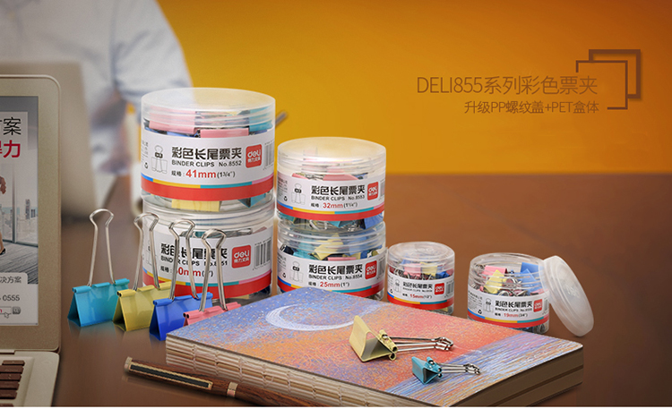 • 商品名稱:得力(deli)40只19mm彩色長尾票夾 金屬票據(jù)夾燕尾夾鐵夾子 8555ES