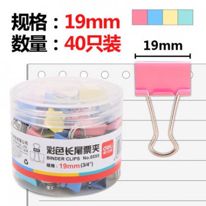 • 得力(deli)40只19mm彩色長尾票夾 金屬票據(jù)夾燕尾夾鐵夾子 8555ES