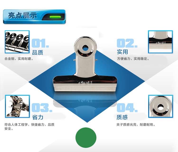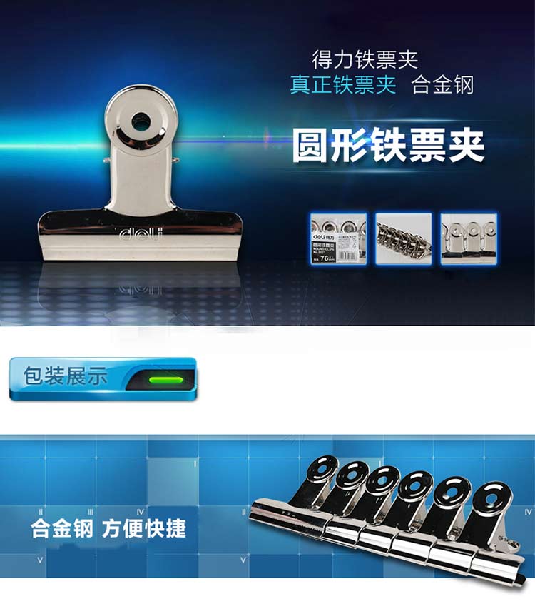 • 商品名稱:得力(deli)6只76mm不銹鋼圓形票夾資料整理夾票據(jù)夾 9521