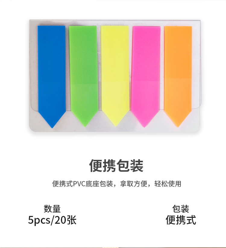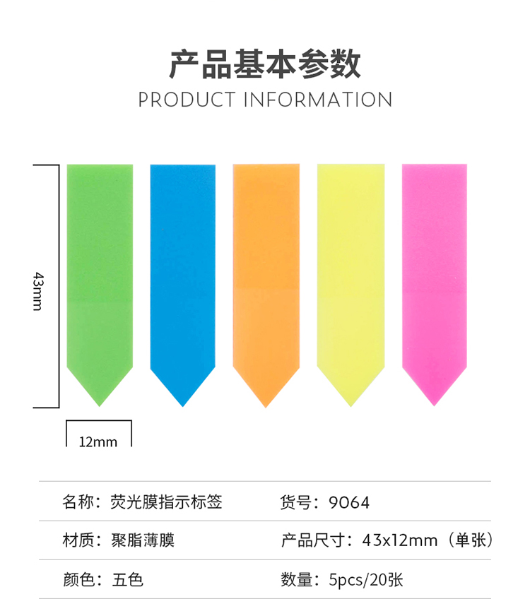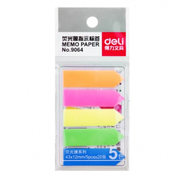 • 商品名稱:得力(deli)100張5色熒光膜指示標(biāo)簽貼 43*12mm箭頭款分類(lèi)索引便利貼記事貼9064