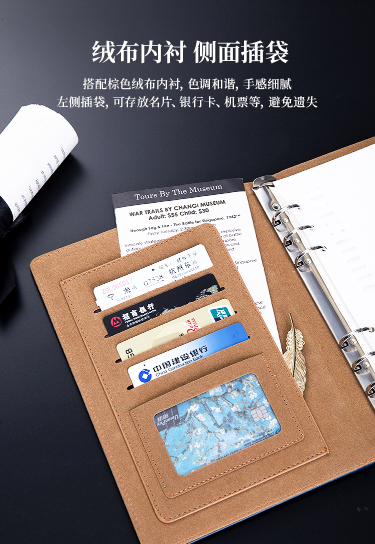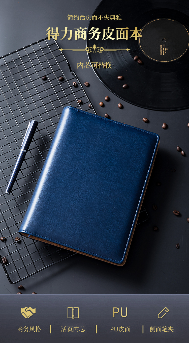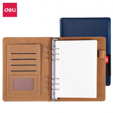 • 得力(deli)25K100張高檔領導款活頁皮面本 商務辦公記事本筆記本子 藍33051