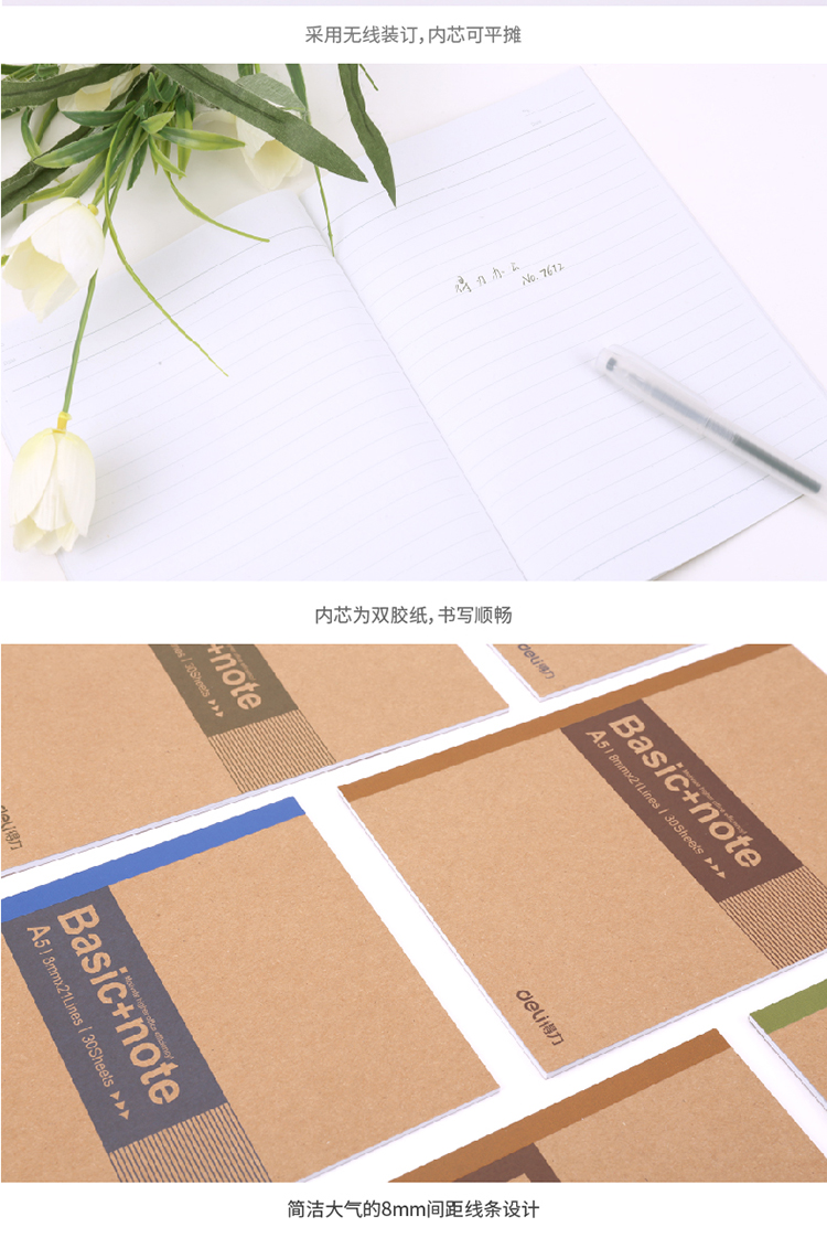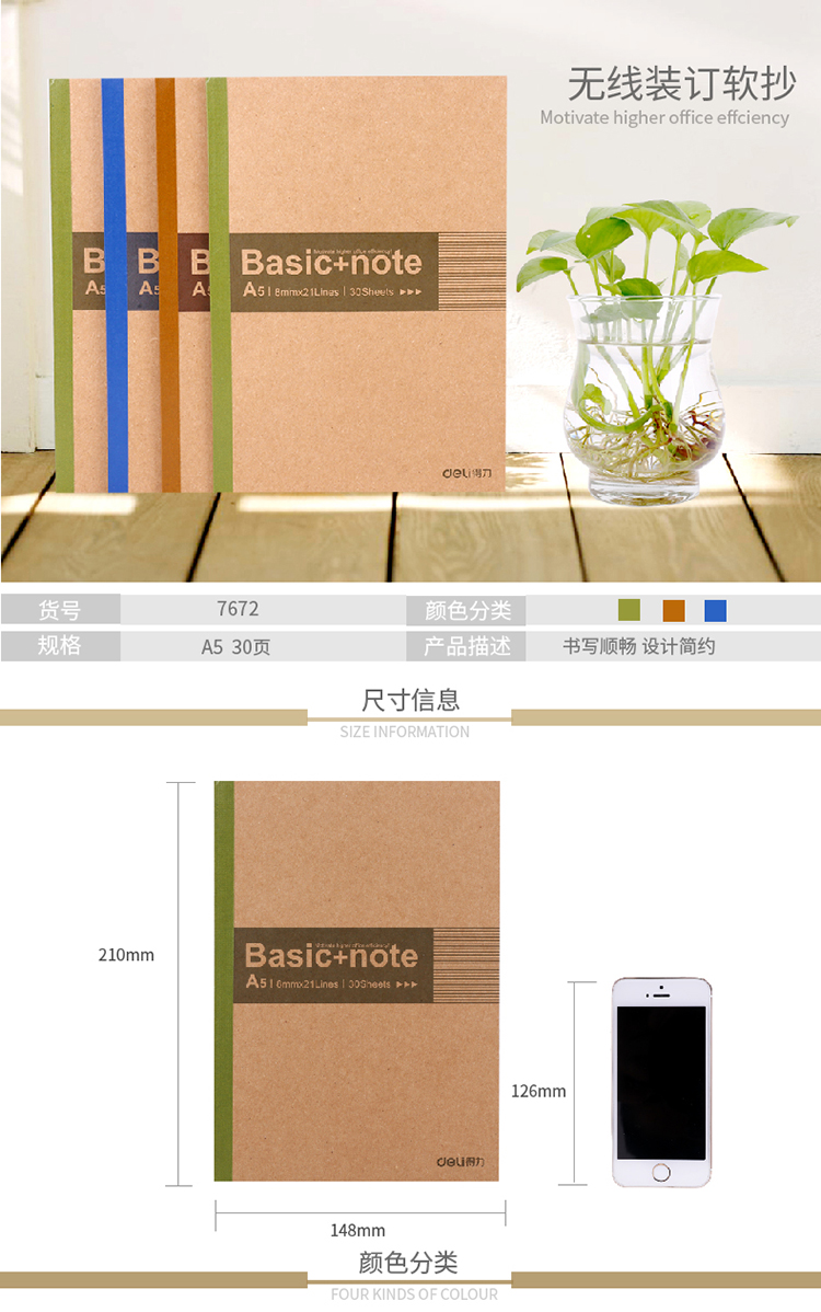 • 商品名稱:得力(deli)12本A5/30張無線裝訂軟抄本辦公記事本 文具筆記本子7672-12