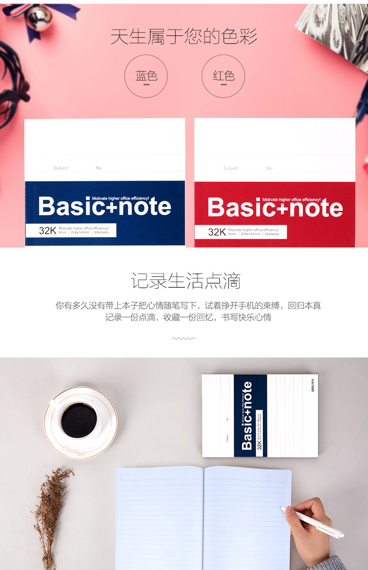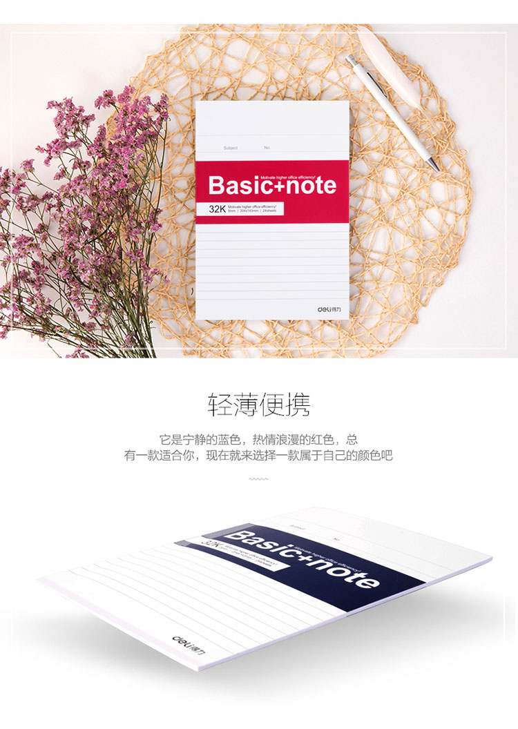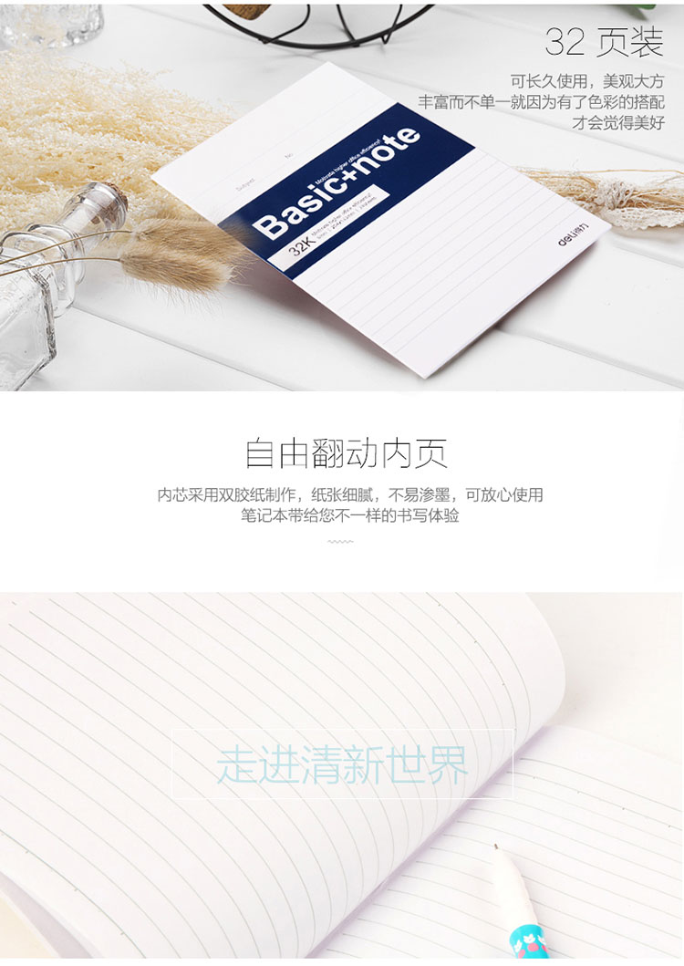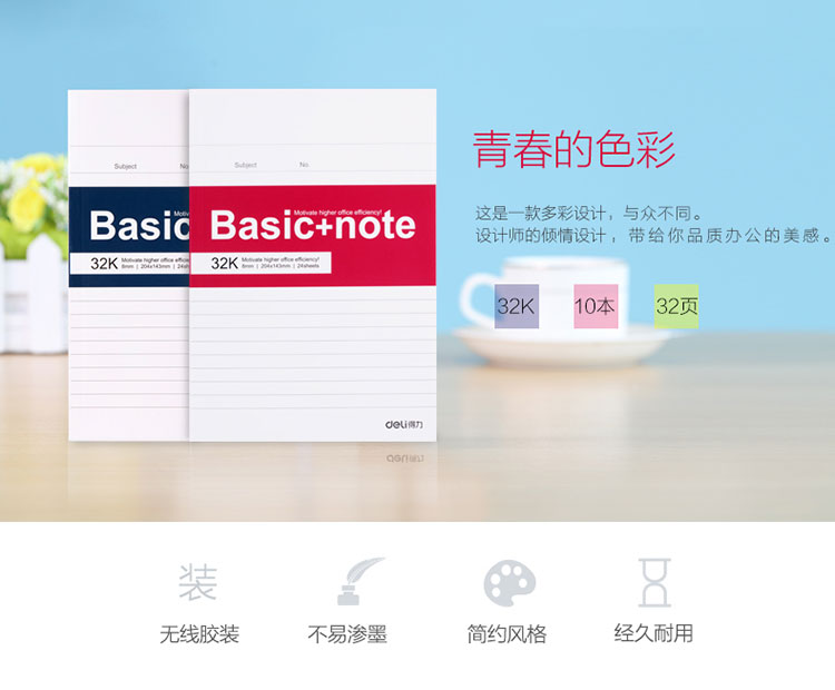 • 商品名稱:得力(deli)10本32K32張無線裝訂軟抄本辦公記事本 文具筆記本子7956-10