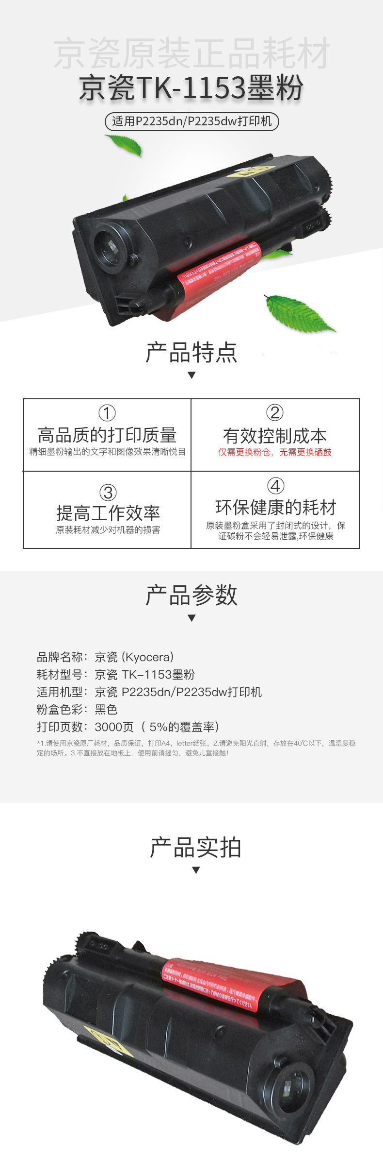 • 商品名稱:京瓷(KYOCERA) TK-1153墨粉 (適用機(jī)型P2235dn/P2235dw打印機(jī))