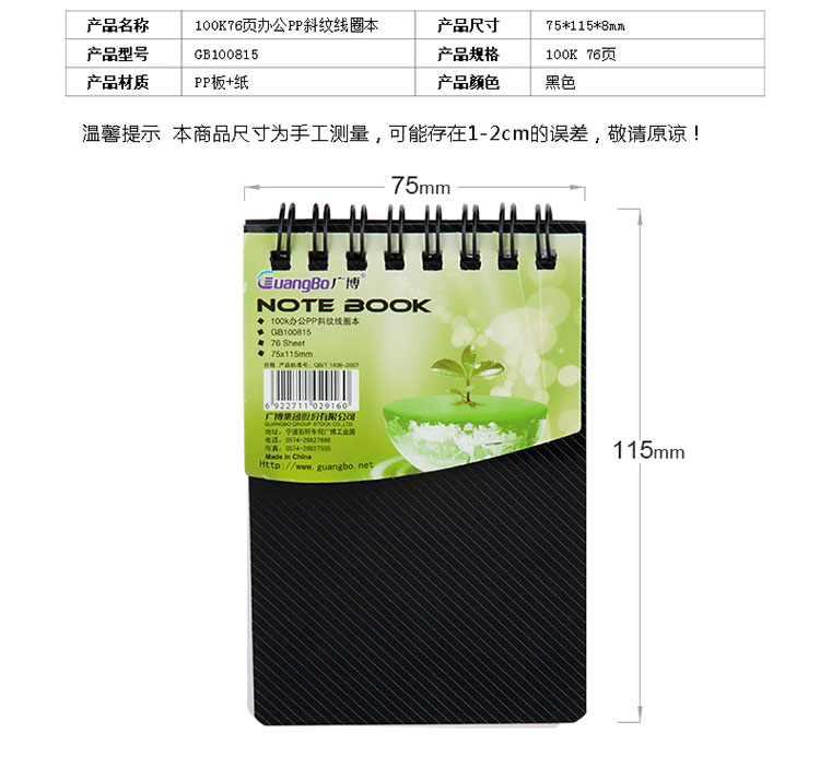 • 商品名稱:廣博(GuangBo)10本裝便簽本子100K76張筆記本PP線圈本顏色隨機GB100815