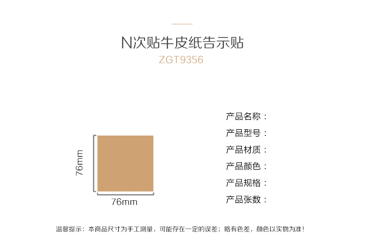 • 商品名稱:廣博(GuangBo)500張76*76mm牛皮紙便利貼/便簽紙/便簽本子ZGT9356