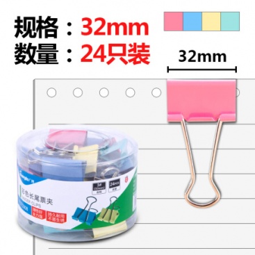 • 商品名稱:廣博(GuangBo)24只裝32mm彩色長尾夾子燕尾夾票夾辦公用品PJTC008