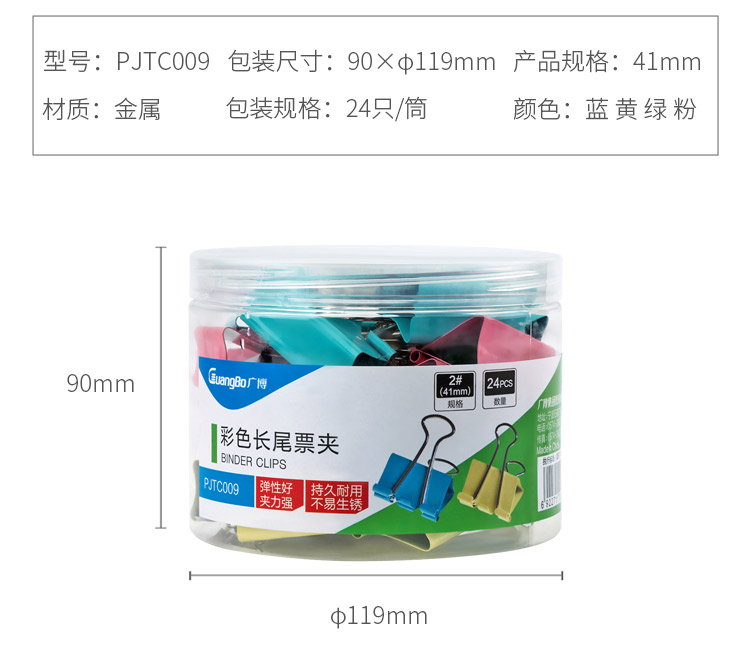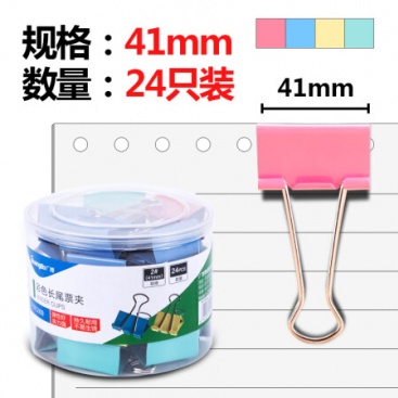 • 商品名稱:廣博(GuangBo)24只裝彩色長尾夾子41mm燕尾夾長尾票夾PJTC009