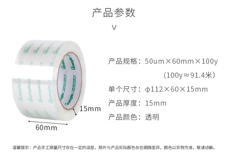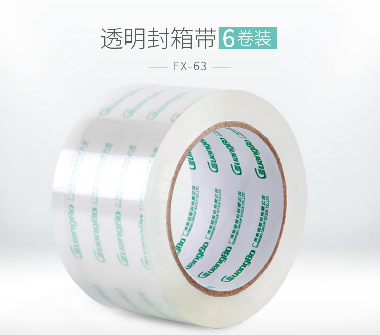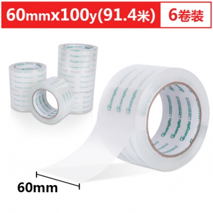 • 商品名稱:廣博(GuangBo)6卷裝60mm*100y高透明寬膠帶封箱膠布辦公文具FX-63