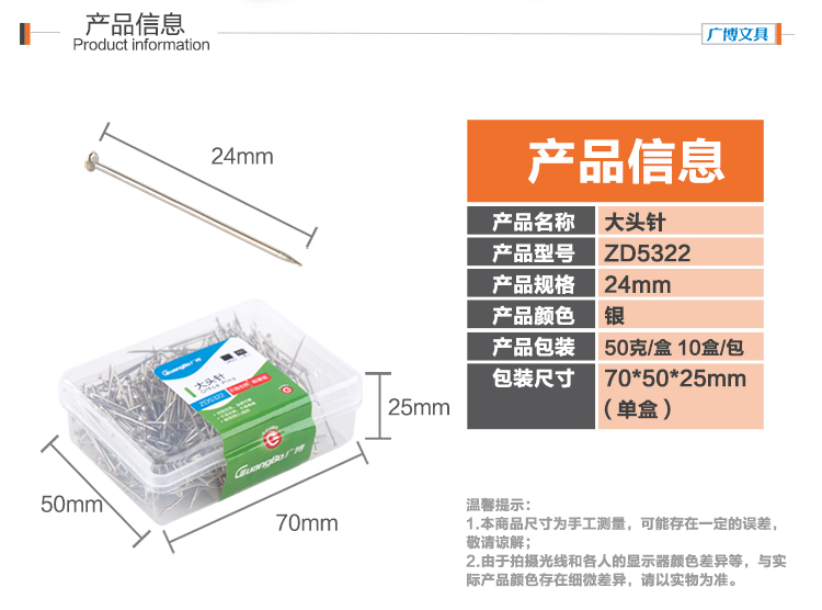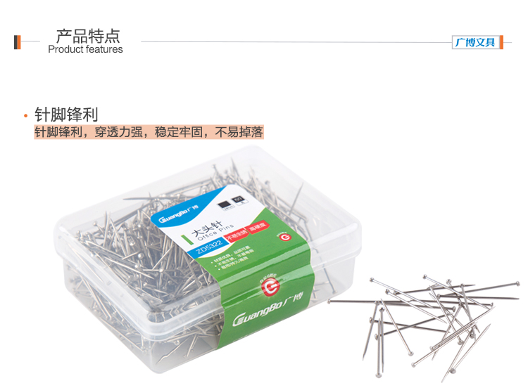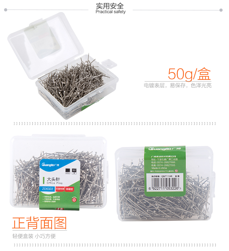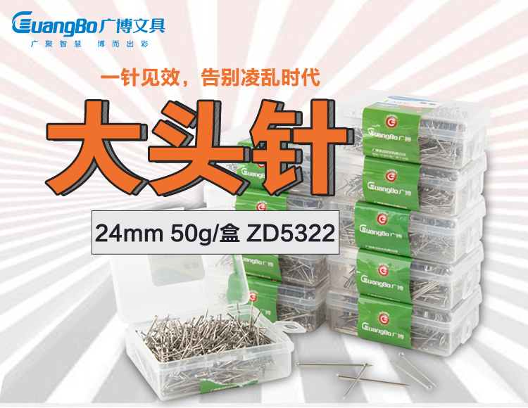 • 商品名稱:廣博(GuangBo)10盒裝24mm塑料盒裝大頭針(50g/盒)辦公用品ZD5322
