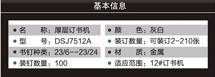 • 商品名稱:廣博(GuangBo)210頁重型金屬厚層訂書機(jī)訂書器辦公文具DSJ7512A