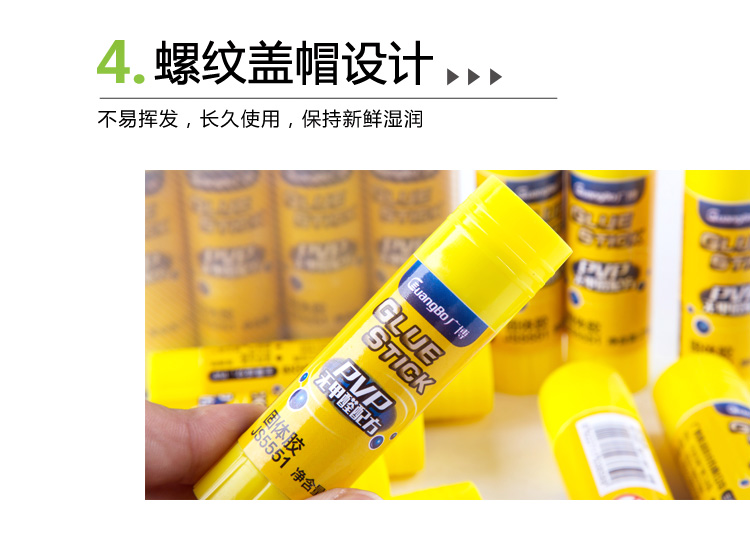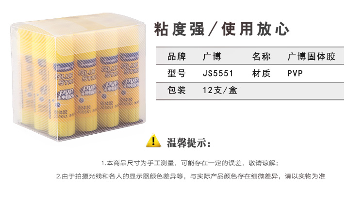 • 商品名稱(chēng):廣博(GuangBo)12支裝PVP固體膠棒21克無(wú)甲醛配方固體膠水辦公用品JS5551