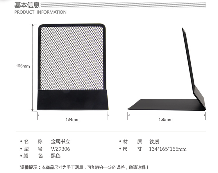 • 商品名稱:廣博(GuangBo)鐵書立架2片/付書夾書靠書擋辦公文具WZ9306