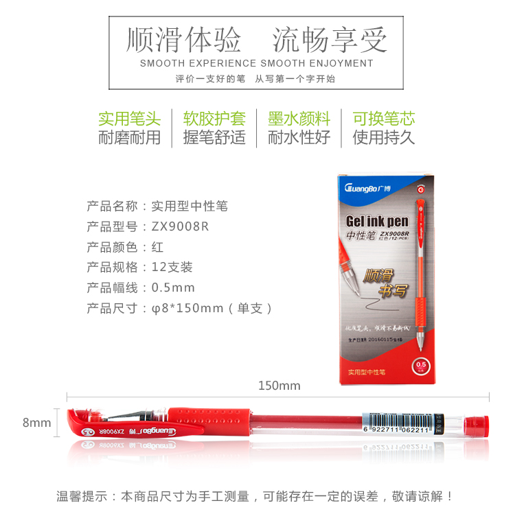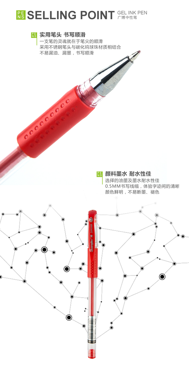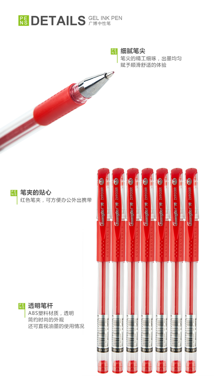 • 商品名稱:廣博(GuangBo)12支裝0.5mm經(jīng)典款子彈頭中性筆/簽字筆/水筆 紅色ZX9008R
