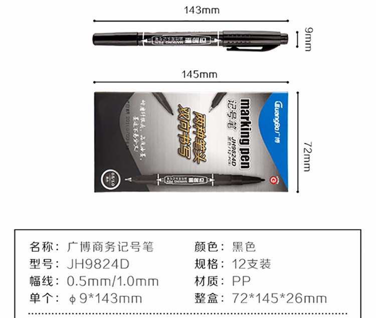• 商品名稱(chēng):廣博(GuangBo)12支裝小雙頭油性記號(hào)筆/粗細(xì)兩用速干型 黑色JH9824D