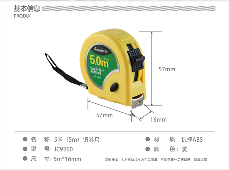 • 商品名稱:廣博(GuangBo)5米(5m)雙制動鋼卷尺辦公文具JC9260