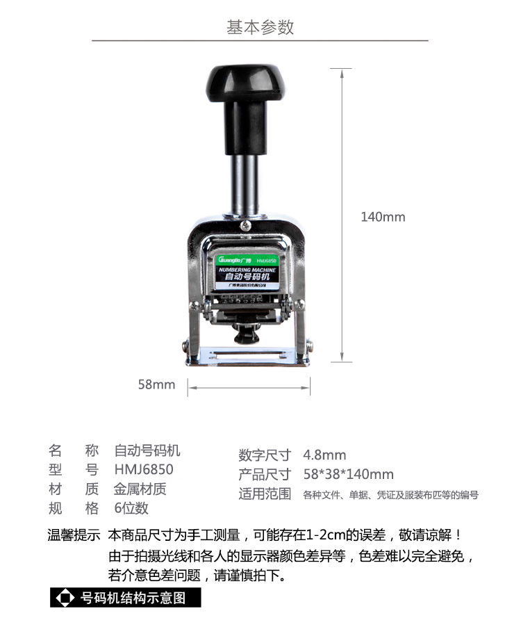 • 廣博(GuangBo)6位數(shù)自動(dòng)號(hào)碼機(jī)/打碼機(jī)器/財(cái)務(wù)辦公用品HMJ6850