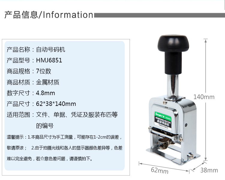 • 廣博(GuangBo)7位數(shù)自動(dòng)號碼機(jī)/打碼機(jī)器/財(cái)務(wù)辦公用品HMJ6851