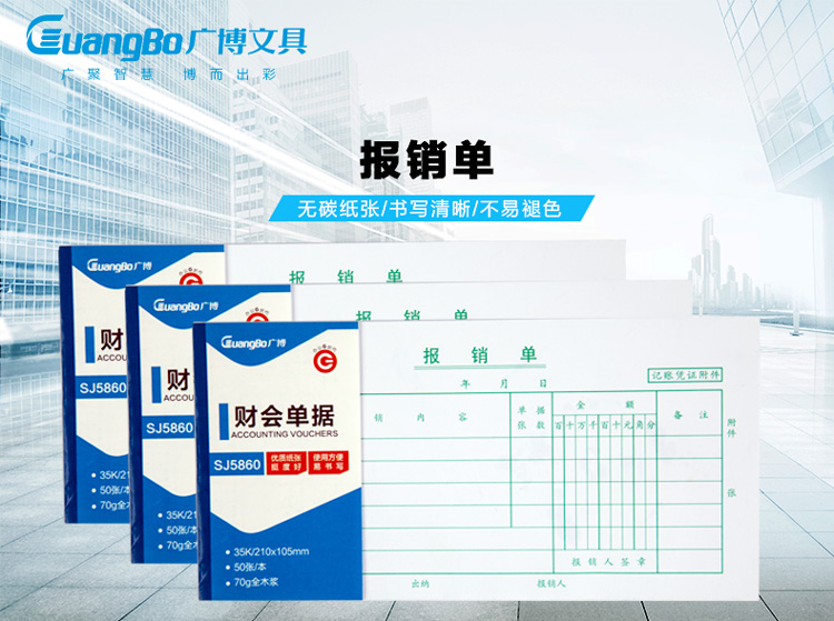 • 廣博(GuangBo)10本裝35K報(bào)銷單/財(cái)會(huì)單據(jù)/財(cái)務(wù)辦公用品SJ5860