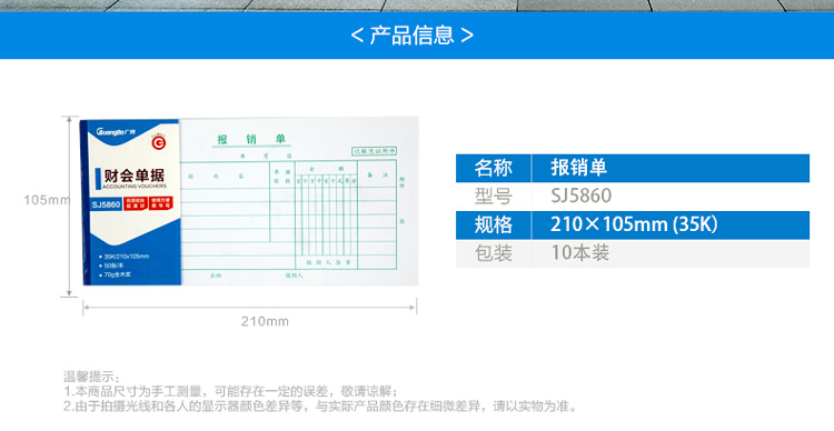 • 商品名稱:廣博(GuangBo)10本裝35K報(bào)銷單/財(cái)會(huì)單據(jù)/財(cái)務(wù)辦公用品SJ5860