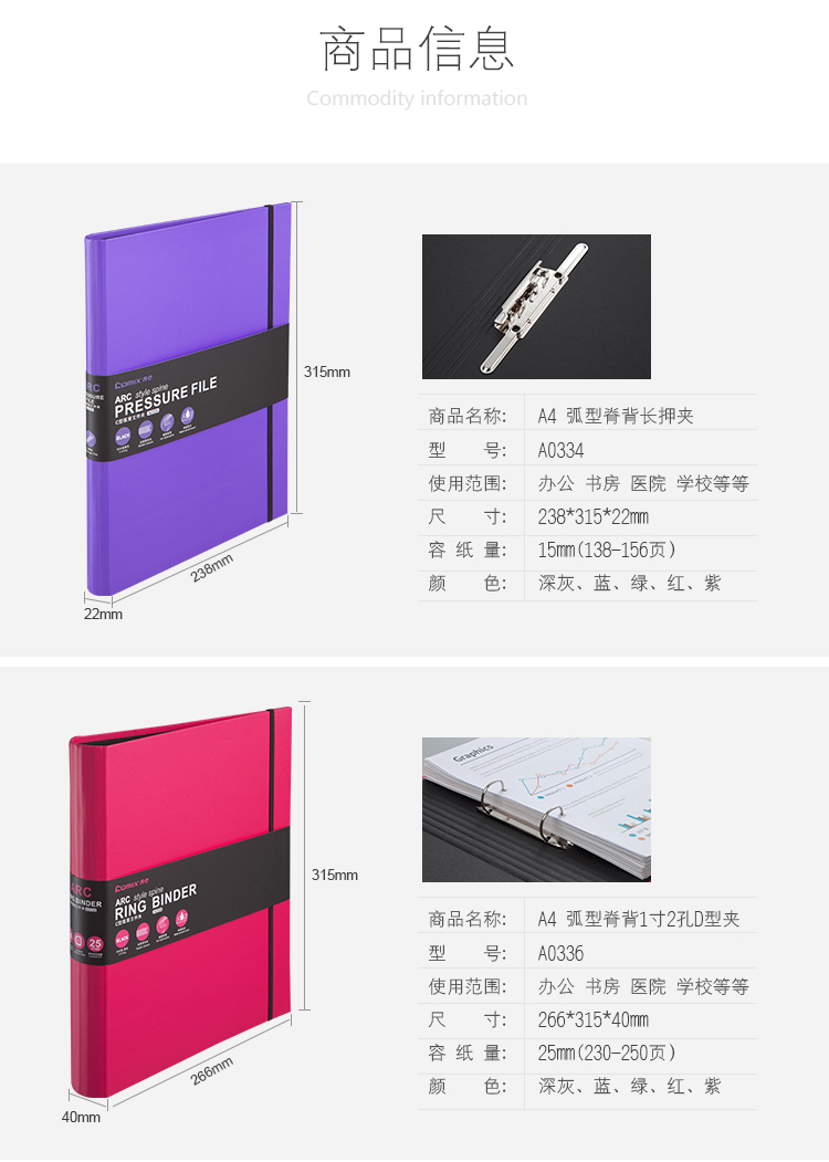 • 商品名稱:齊心(Comix) A4 1寸2孔D型夾ARC弧型脊背管理夾/文件夾/資料夾A0336 紫