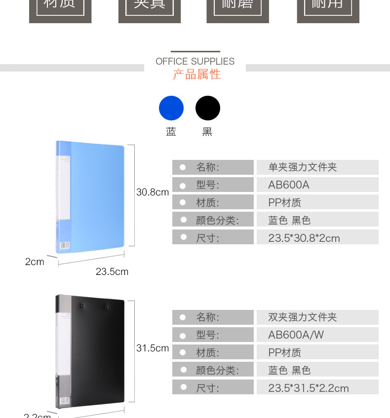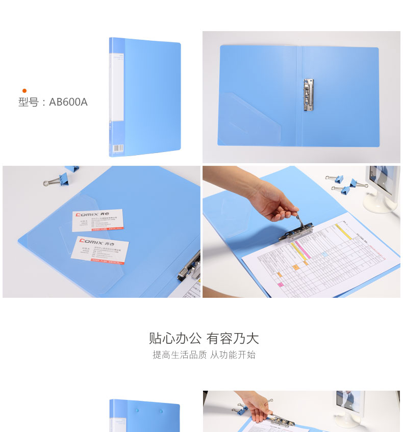 • 商品名稱:齊心(Comix) A4文件夾 雙強力夾 資料夾 藍色 AB600A-W