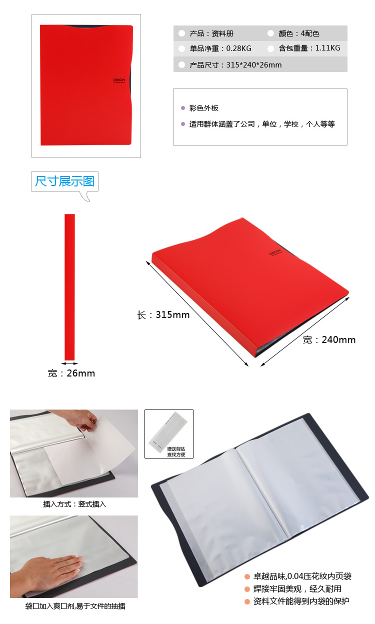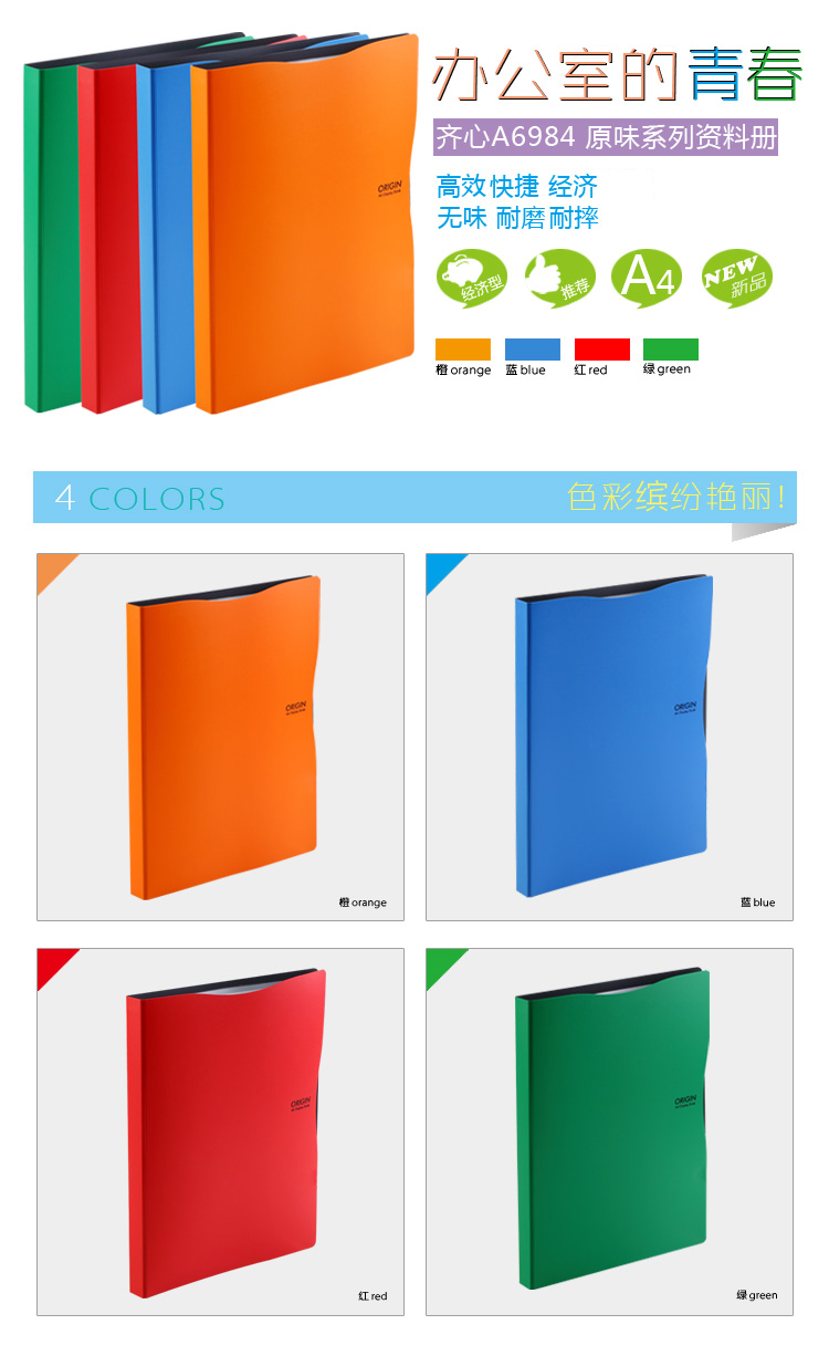 • 商品名稱:齊心(Comix) 4個配色裝 40頁A4原味系列資料冊/文件頁/文件夾 A6984 辦公文具