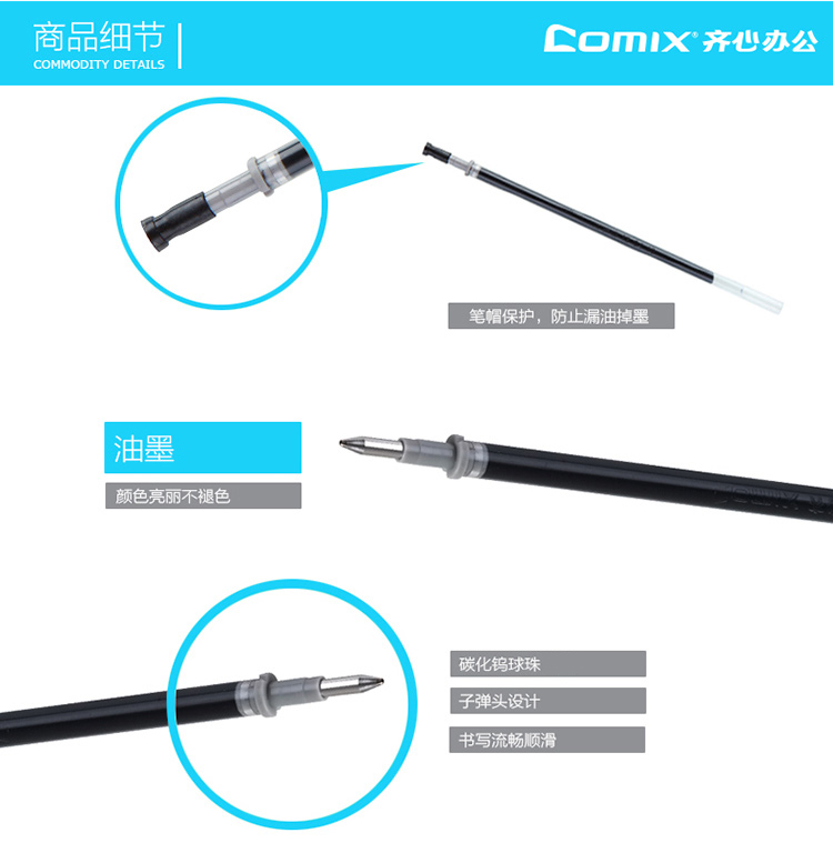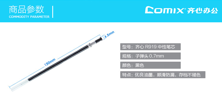 • 商品名稱:齊心(COMIX)20支裝 0.7mm順滑到底中性筆筆芯 黑色 辦公文具 R919