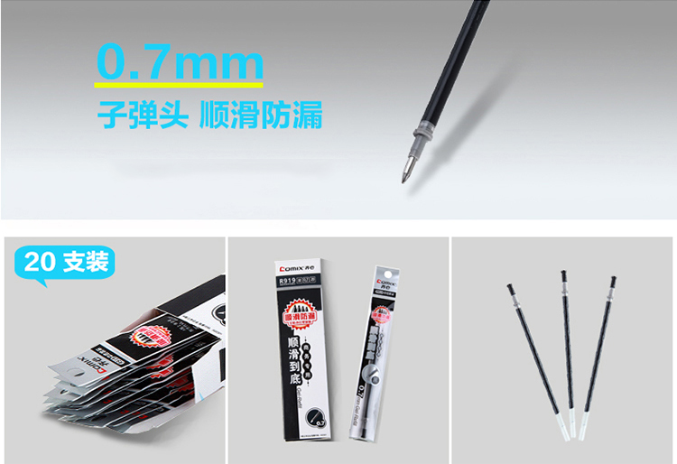 • 齊心(COMIX)20支裝 0.7mm順滑到底中性筆筆芯 黑色 辦公文具 R919