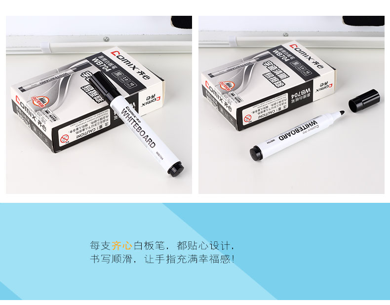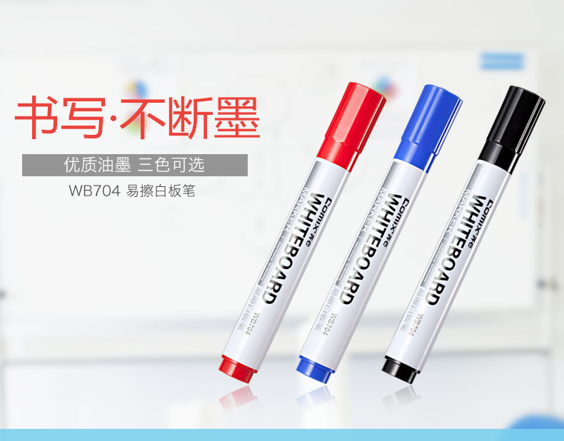 • 齊心(COMIX)WB704 易擦白板筆10支裝 藍(lán)色