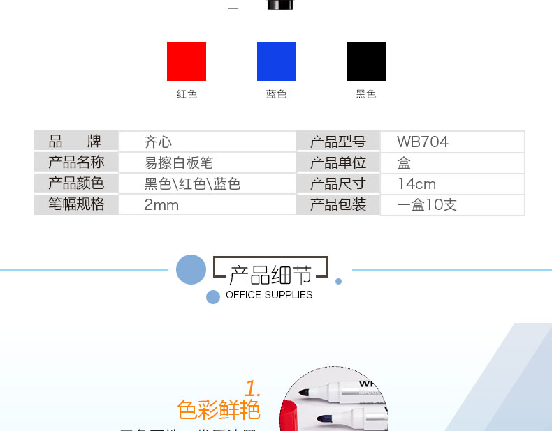 • 商品名稱(chēng):齊心(COMIX)WB704 易擦白板筆10支裝 藍(lán)色