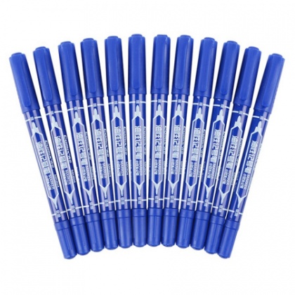 • 商品名稱:齊心(Comix)12支裝 藍色速干防水小雙頭油性記號筆 辦公文具 MK804