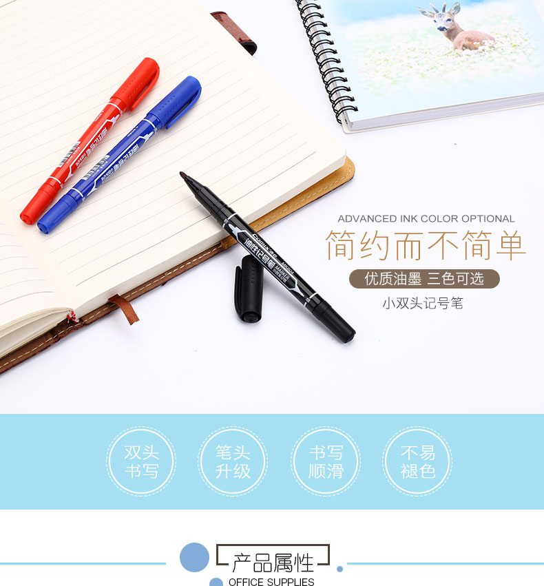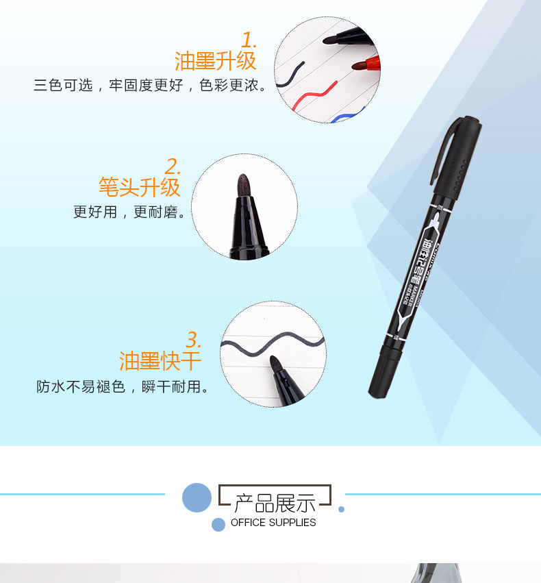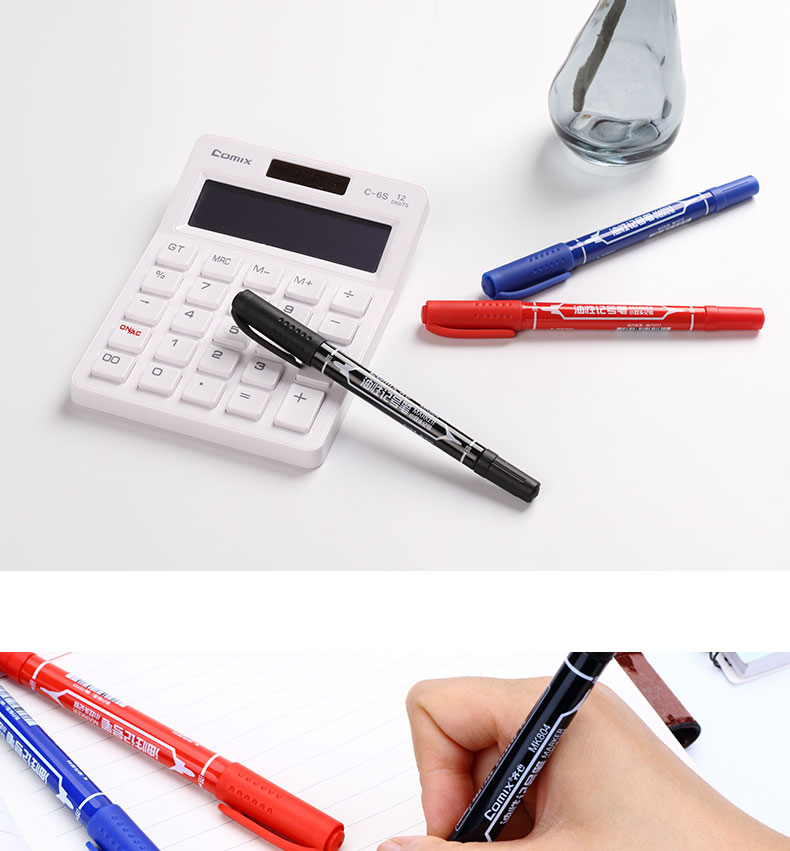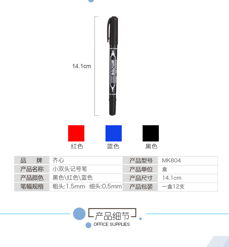 • 商品名稱:齊心(Comix)12支裝 紅色速干防水小雙頭油性記號(hào)筆 辦公文具 MK804