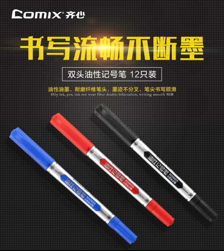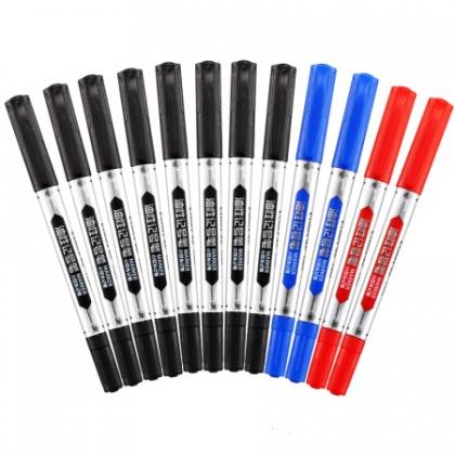 • 齊心(COMIX)速干防水小雙頭油性記號筆簽字筆勾線筆會議筆套裝(8黑2紅2藍) EB84