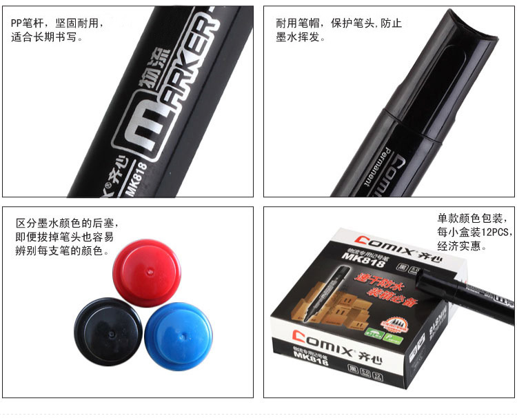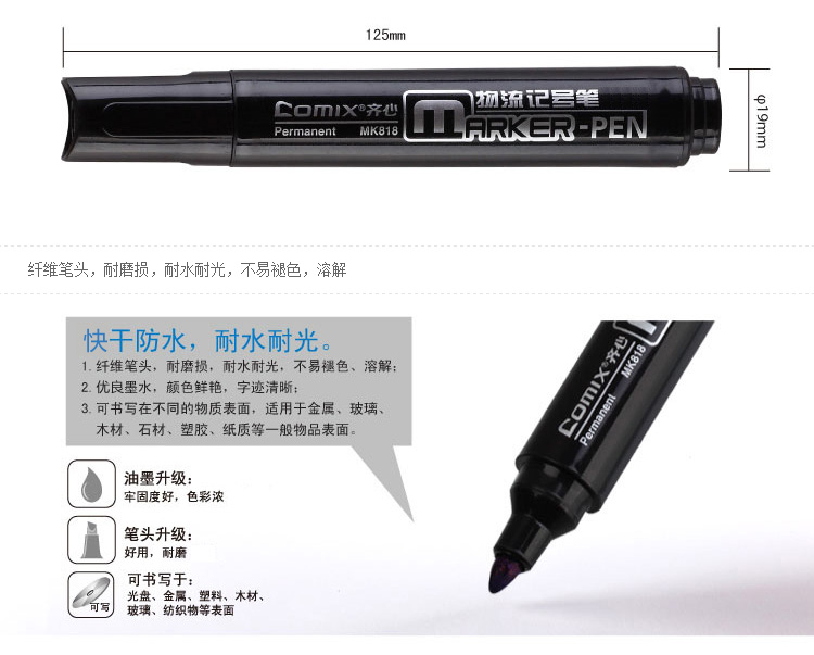 • 商品名稱:齊心(Comix)藍(lán)色粗頭物流油性記號筆大頭筆 12支/盒 MK818