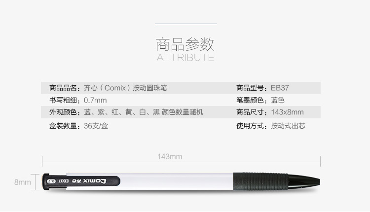 • 商品名稱:齊心(COMIX) 36支裝藍色按動圓珠筆0.7mm 辦公文具 EB37