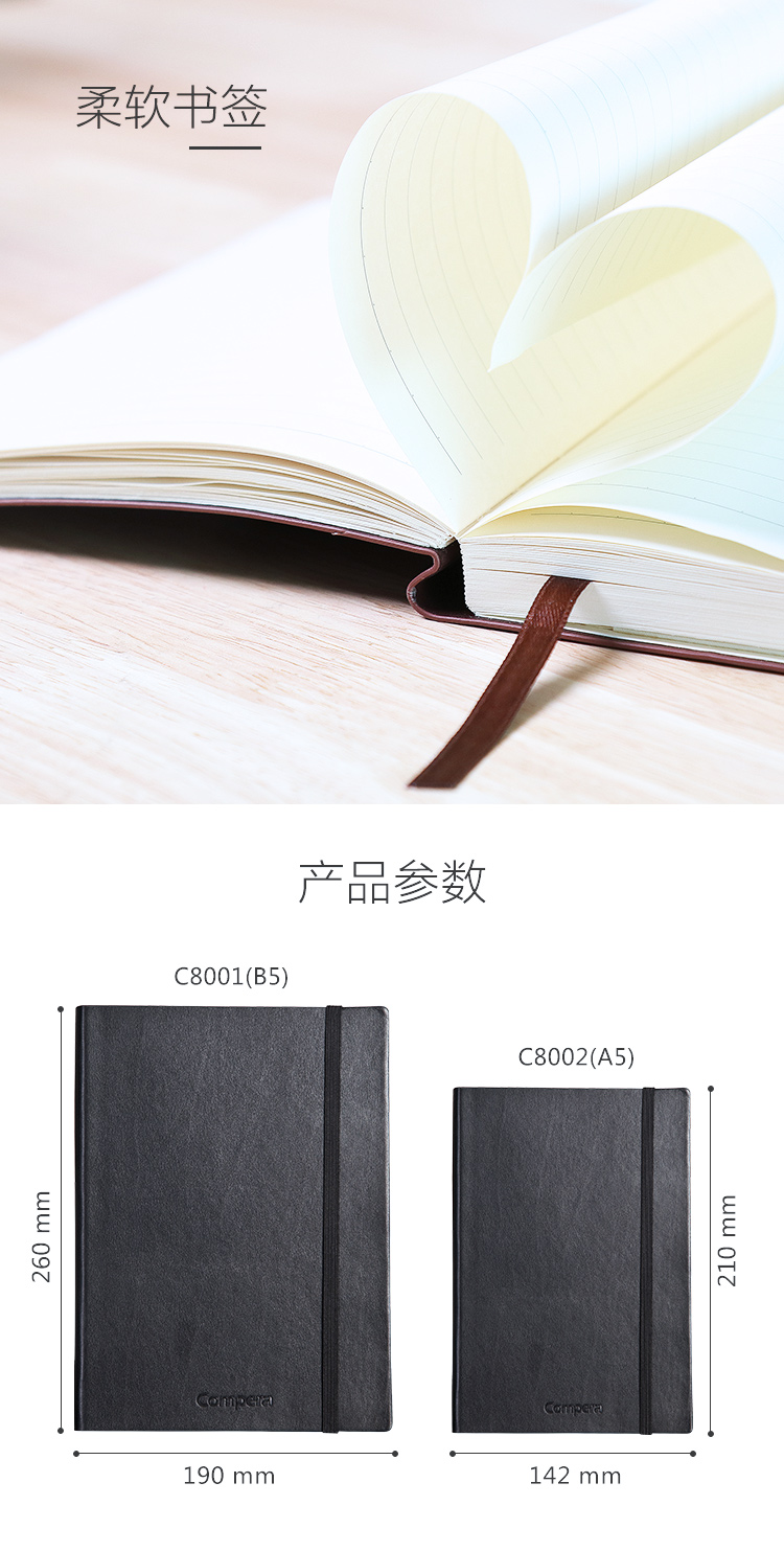 • 商品名稱:齊心(COMIX)B5 154頁商務(wù)皮面筆記本子/記事本/日記本 Compera精英系列 黑色 辦公文具 C8001