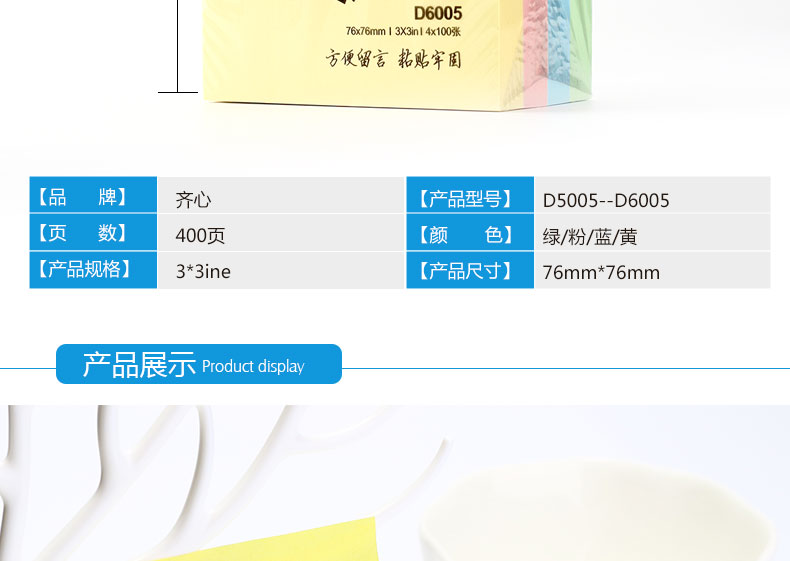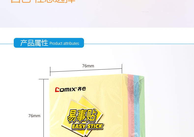 • 商品名稱:齊心(Comix)4色裝便利貼/便簽紙/便簽本/易事貼/百事貼(76x76mm) 辦公文具 D6005