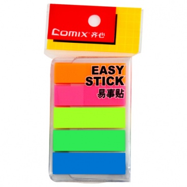 • 齊心(Comix)D7014EC 熒光膜掛式指示標(biāo)簽/便簽條/便利貼/百事貼 5個(gè)裝 (44x12mm)20張*5色
